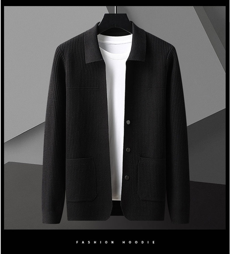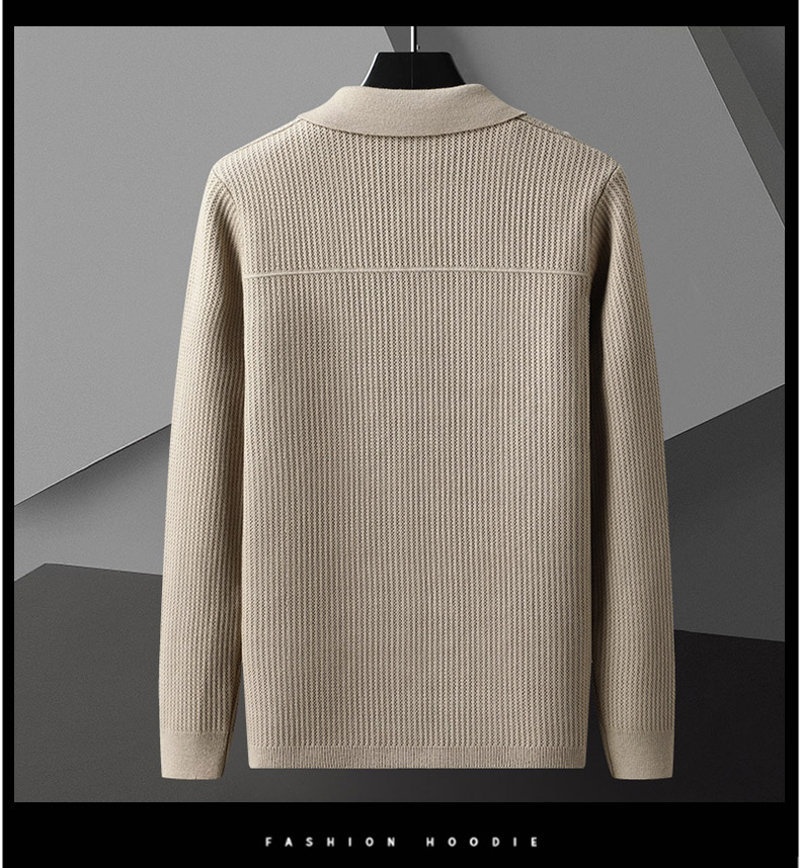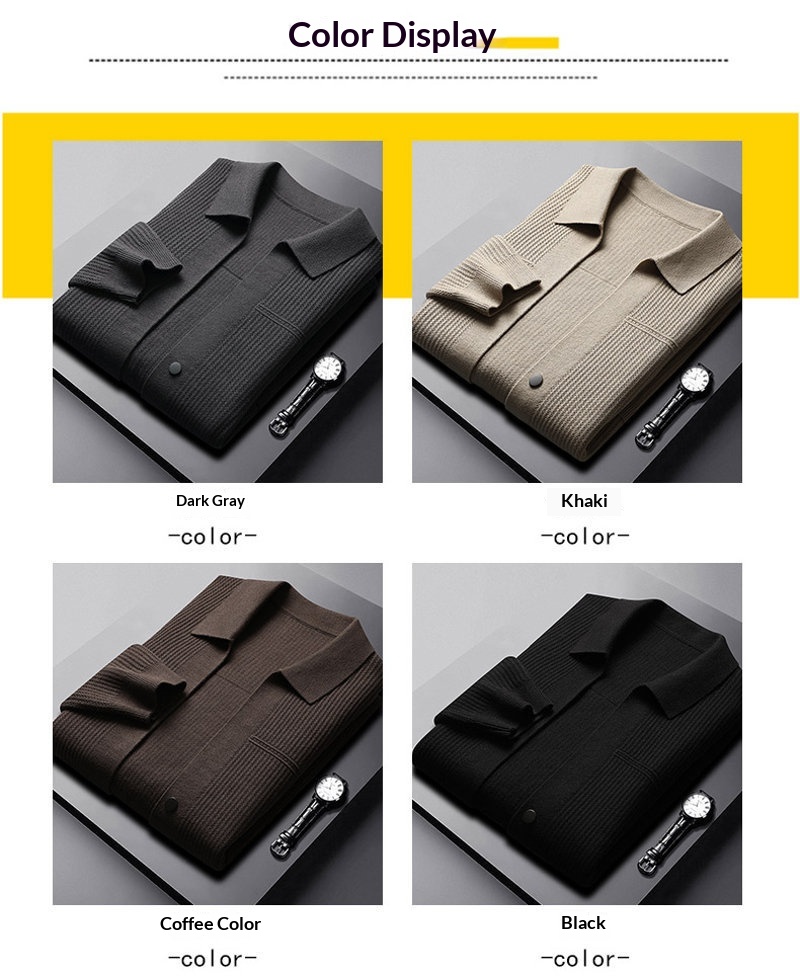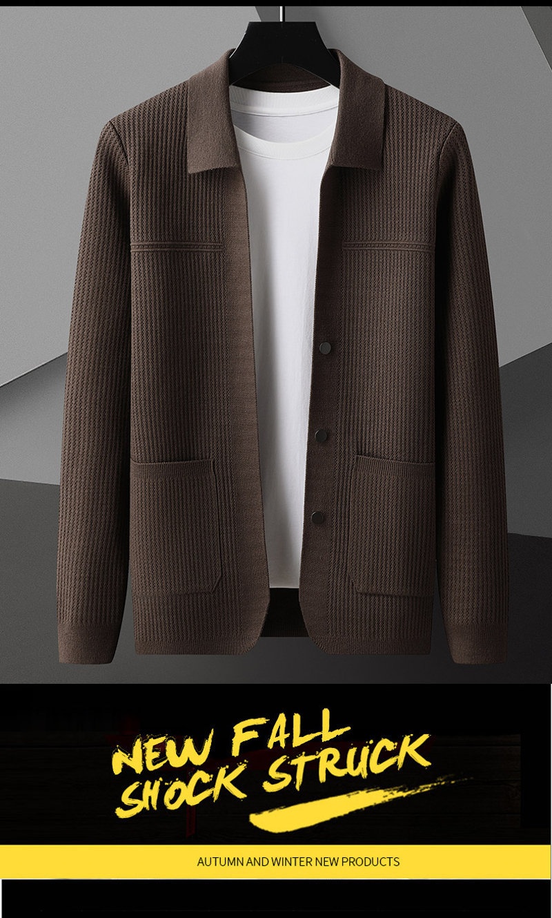 Men's AutumnWinter New Arrival Solid-Colored Thickened Lapel Long-Sleeve Sweater With Pockets