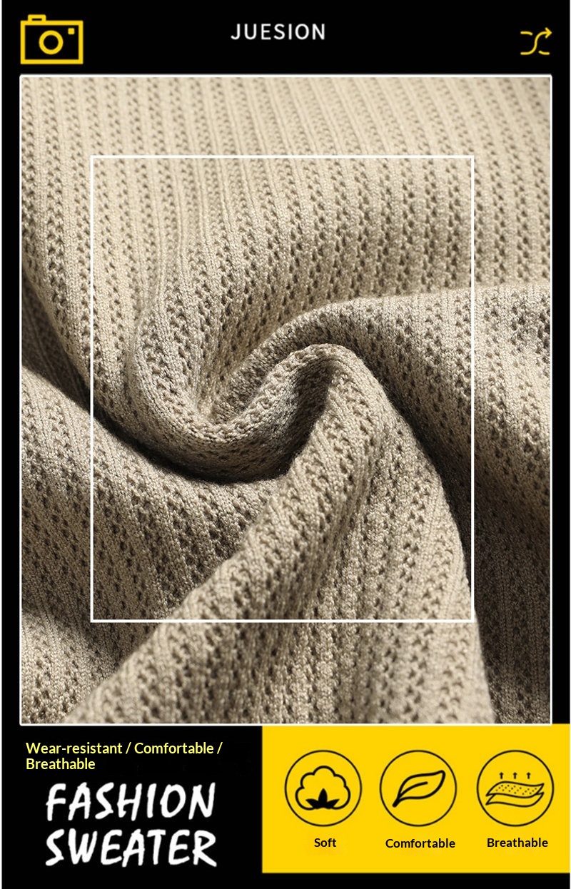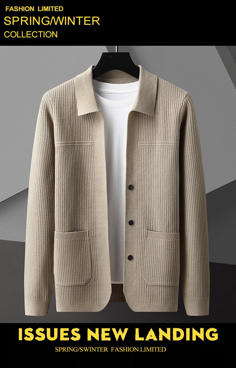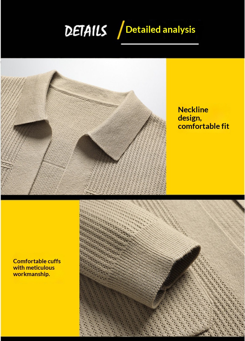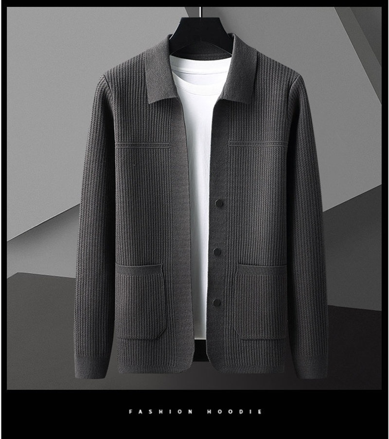 Men's AutumnWinter New Arrival Solid-Colored Thickened Lapel Long-Sleeve Sweater With Pockets