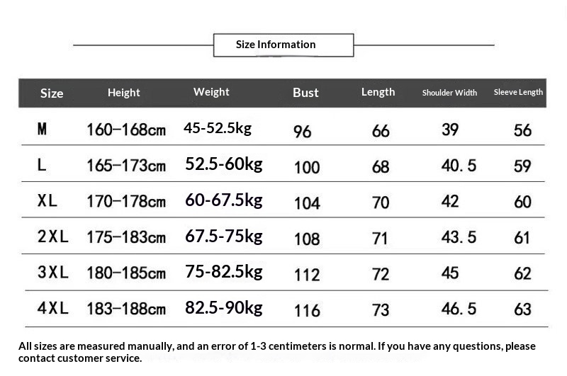 Sizes: M, L, XL, XXL, XXXL, XXXXL